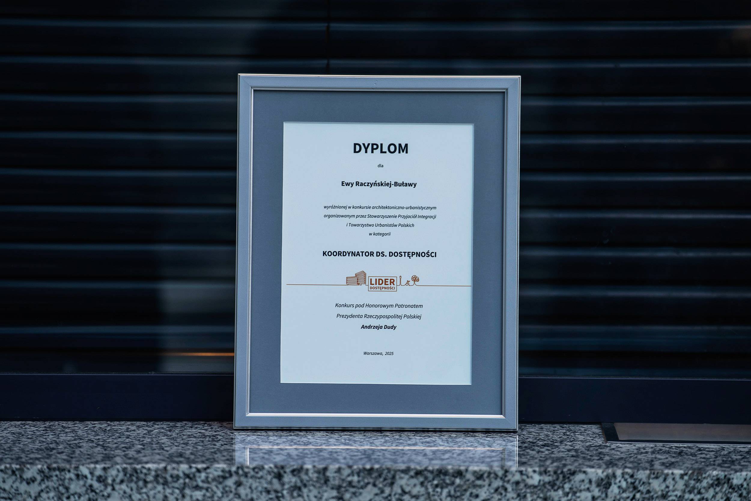 Podczas jubileuszowej, 10. edycji konkursu kapituła konkursowa po raz pierwszy przyznała nagrody w nowej kategorii „Koordynator ds. dostępności". Wśród wyróżnionych najlepszych koordynatorów dostępności w kraju znalazła się Ewa RaczyńskaBuława, pełniąca od prawie 10 lat funkcję Pełnomocnika Zarządu ds. Osób Niepełnosprawnych oraz koordynatora dostępności w Łódzkiej Kolei Aglomeracyjnej.