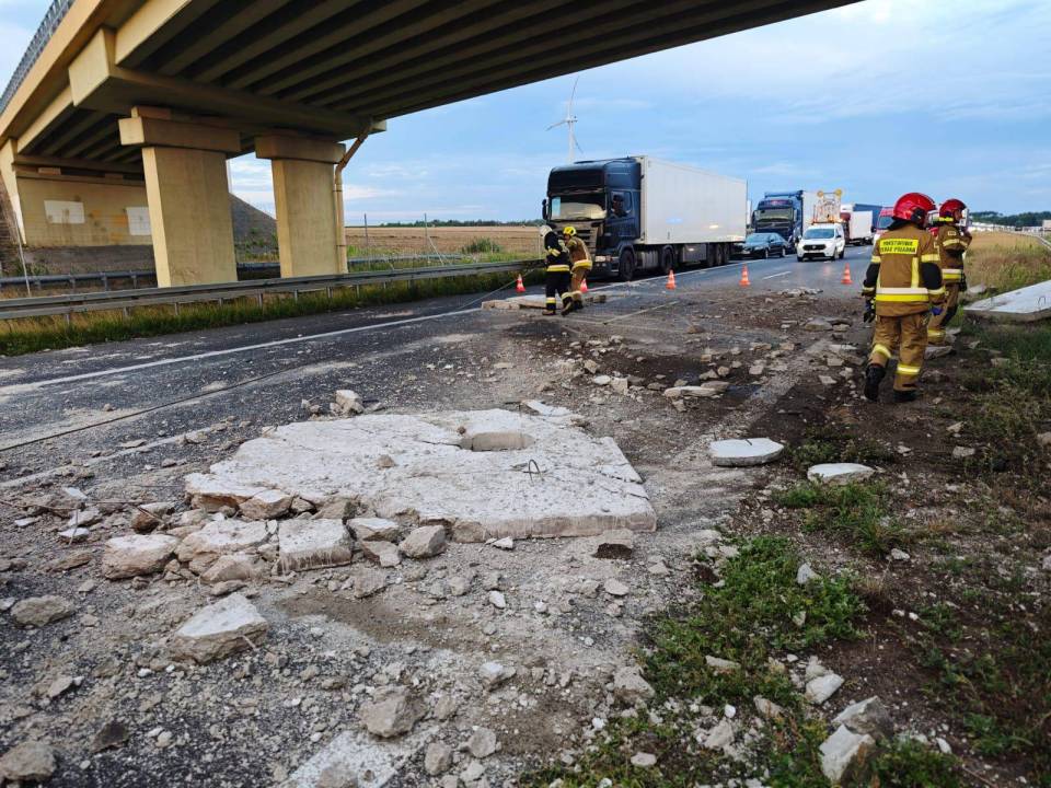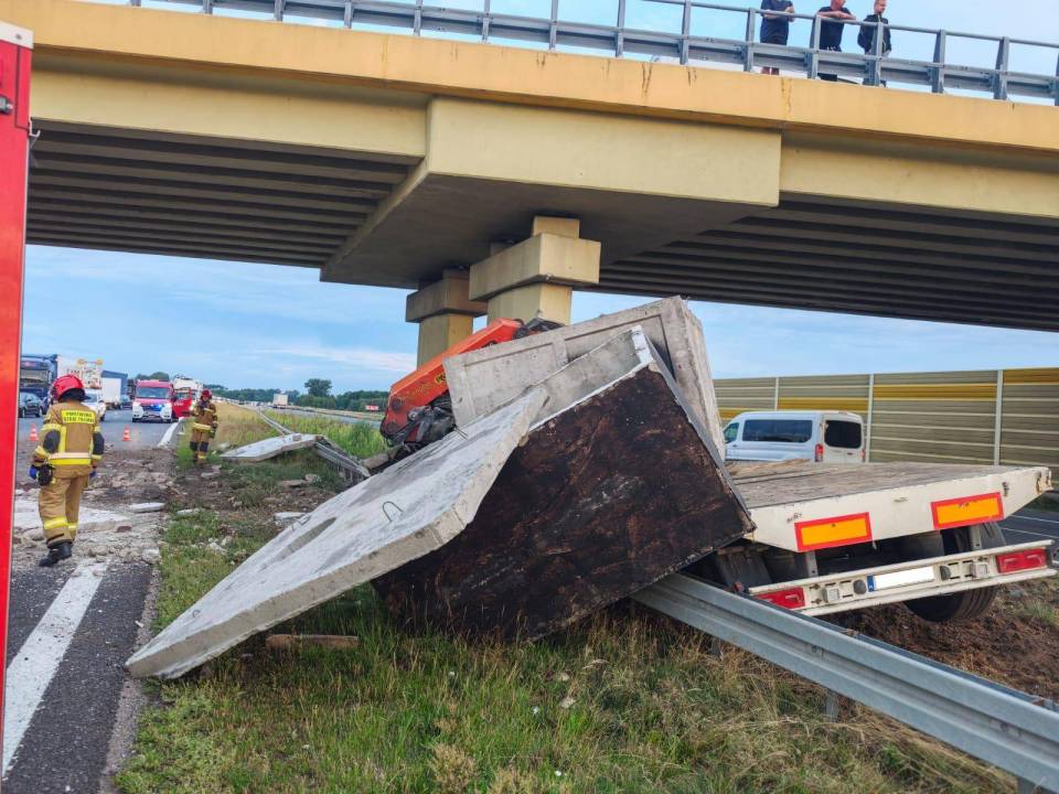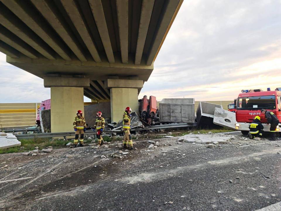 Poważny wypadek na A2. Ciężarówka uderzyła w wiadukt – ładunek rozsypał się na autostradzie
