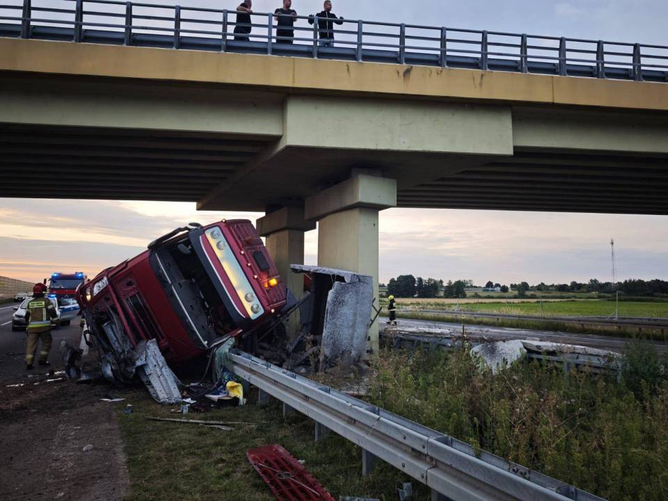 Do groźnego wypadku doszło w piątkowy poranek na autostradzie A2, pomiędzy węzłami Wartkowice i Emilia, na wysokości Zgierza (woj. łódzkie). Około godziny 6:00 kierujący samochodem ciężarowym z nieustalonych jeszcze przyczyn zjechał z trasy i uderzył bokiem pojazdu w wiadukt.