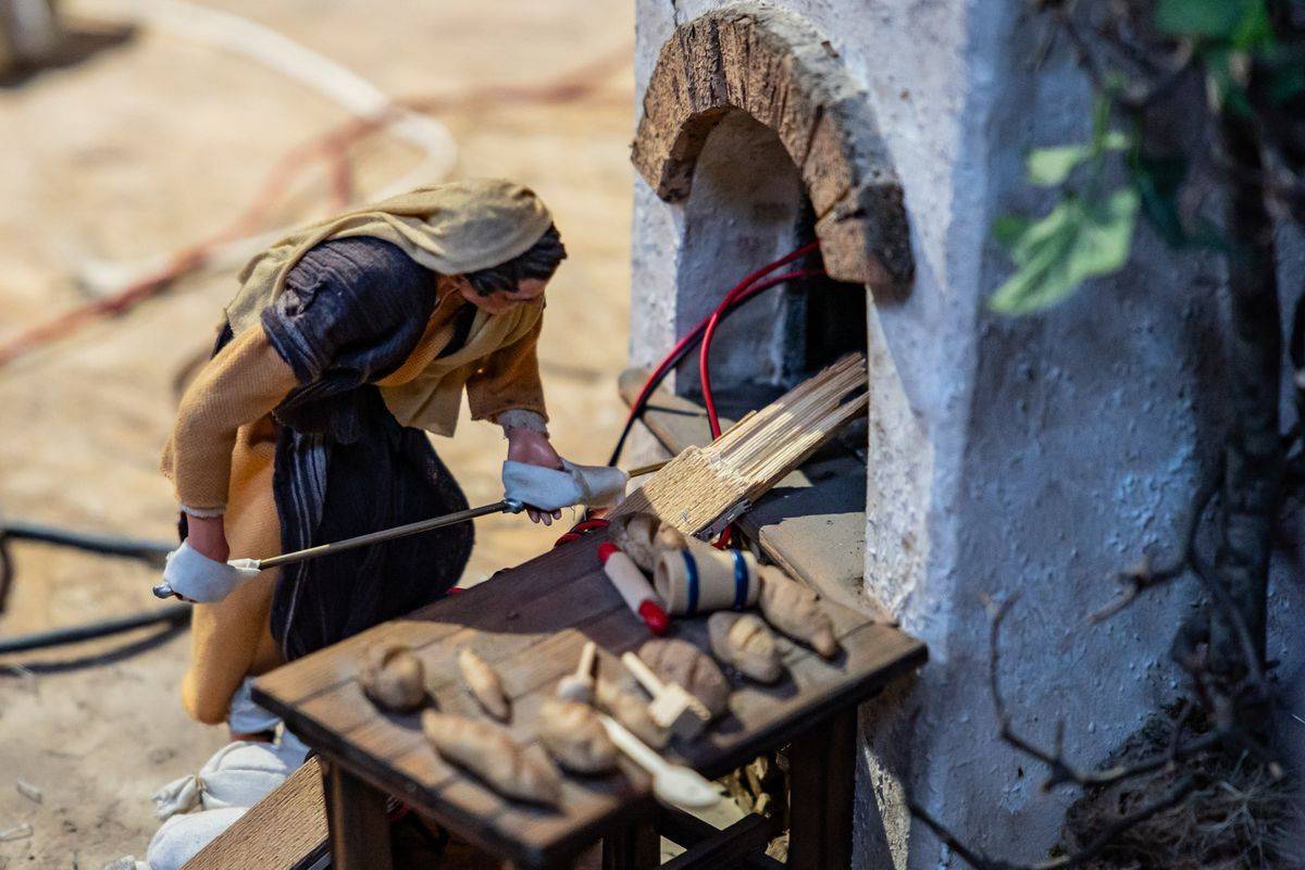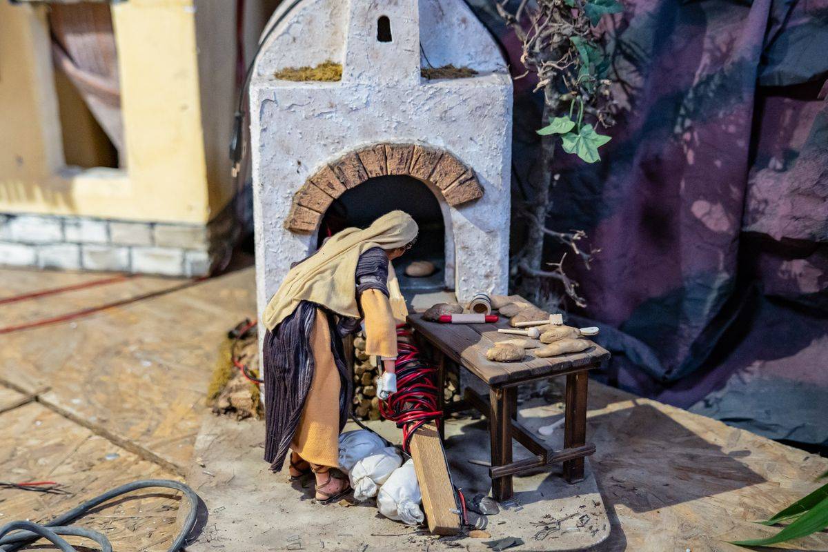 Układ szopki przypomina wędrówkę po Betlejem, miejscu narodzin Jezusa. Centralnym punktem jest Dzieciątko, a wokół toczy się codzienne życie. Można zobaczyć postacie wykonujące różne zawody, dziś często już zapomniane, takie jak kowal czy garncarz.