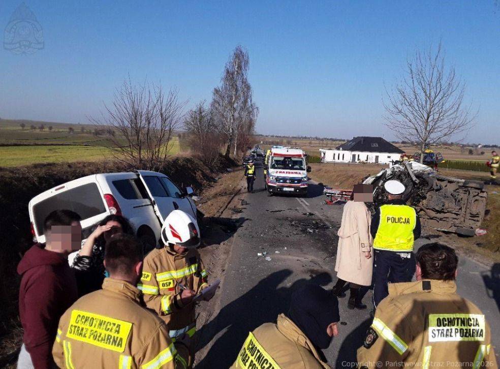 Wypadek dwóch osobówek w gminie Moszczenica. Na miejscu strażacy, ratownicy i śmigłowiec LPR. Sześć osób w szpitalu [Foto]