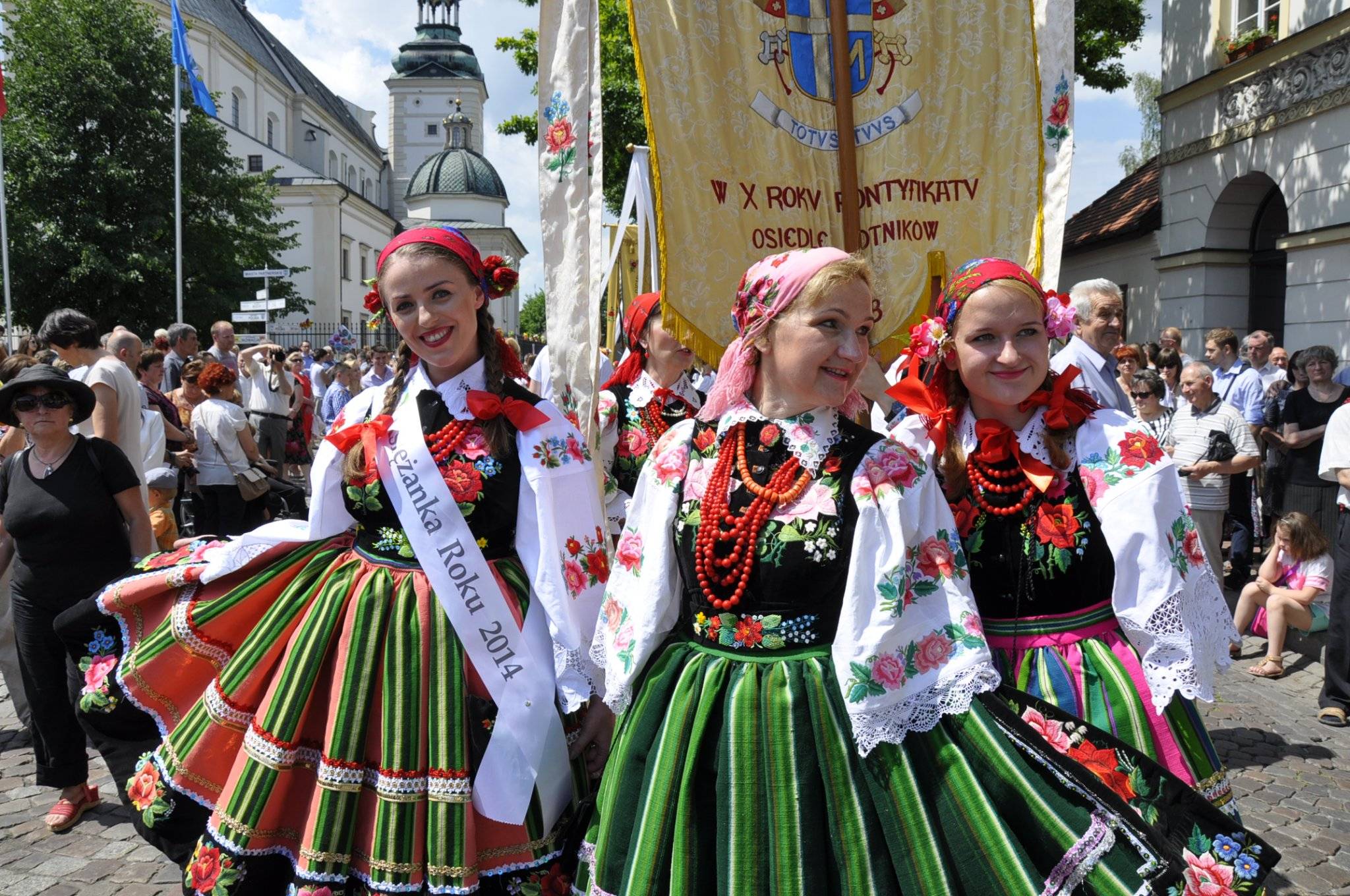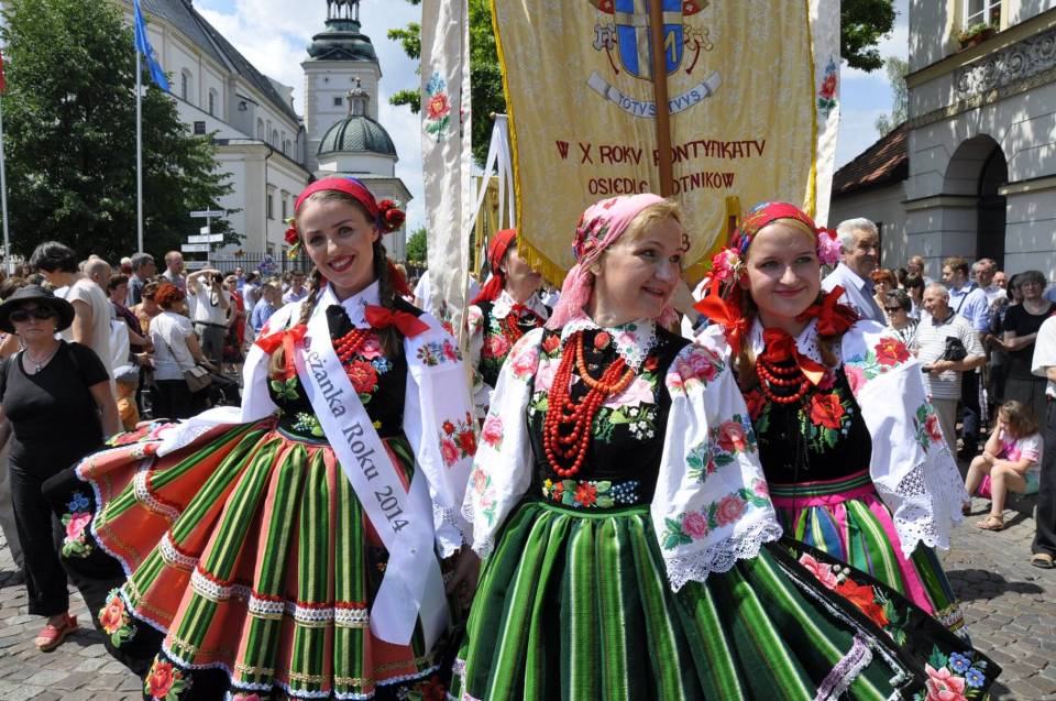 To właśnie łowicka procesja Bożego Ciała zyskała międzynarodową sławę – nie tylko dzięki swojej religijnej wymowie, lecz przede wszystkim za sprawą niezwykłej oprawy. Mieszkańcy Łowicza, zarówno dzieci, młodzież, jak i dorośli, zakładają tego dnia tradycyjne stroje ludowe – słynne „pasiaki" – będące dumą regionu. Stroje te, pełne soczystych kolorów i misternych haftów, to jeden z najbardziej rozpoznawalnych symboli polskiego folkloru, znany i ceniony nie tylko w kraju, ale i za granicą – pojawiały się na wystawach, w muzeach i pokazach etnograficznych od Nowego Jorku po Tokio.