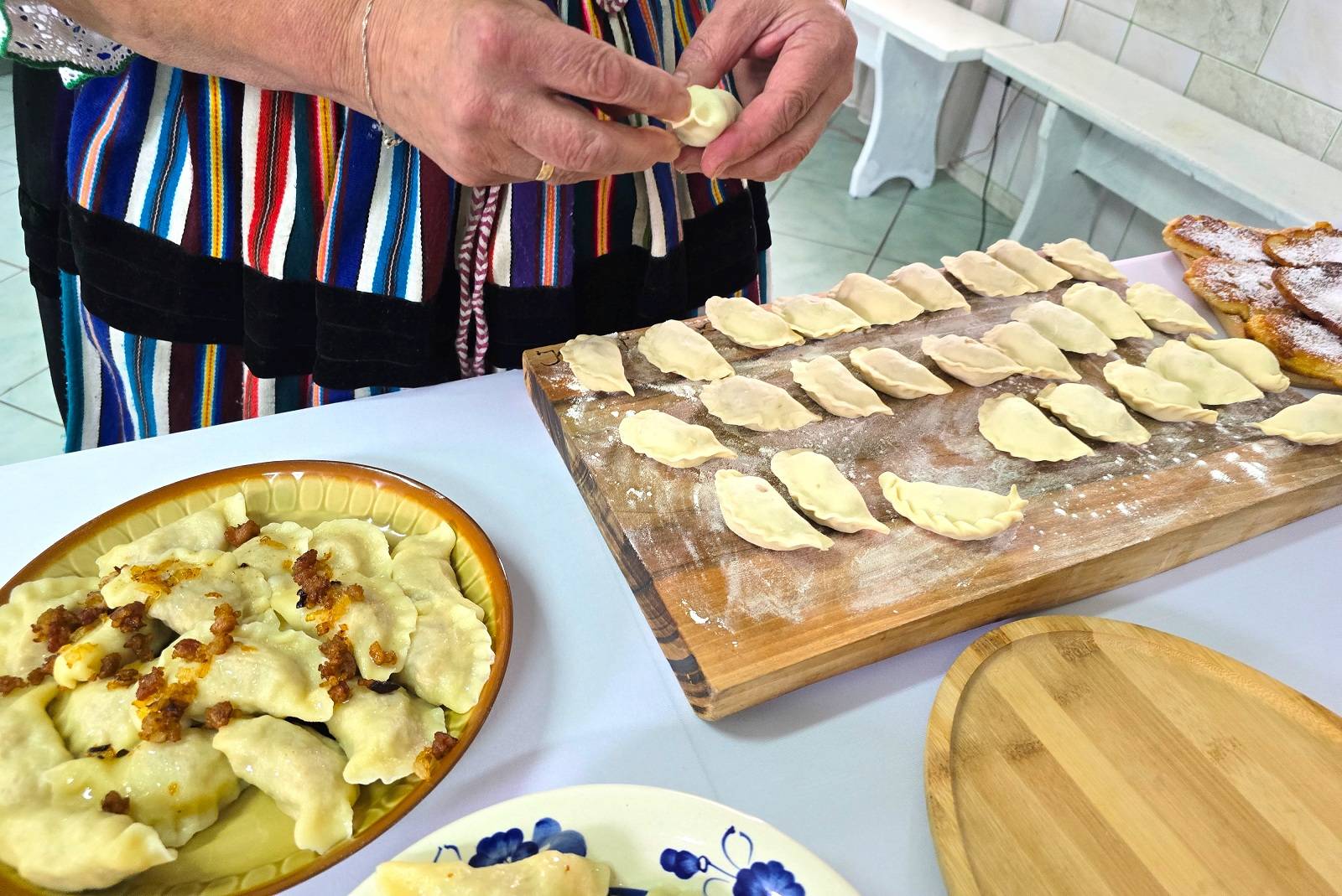 - Panie jak przychodzą lepić pierogi, to tak standardowo wychodzi 500-600. Jak się rozpędzą, to by do rana siedziały - śmieje się pan Dariusz.